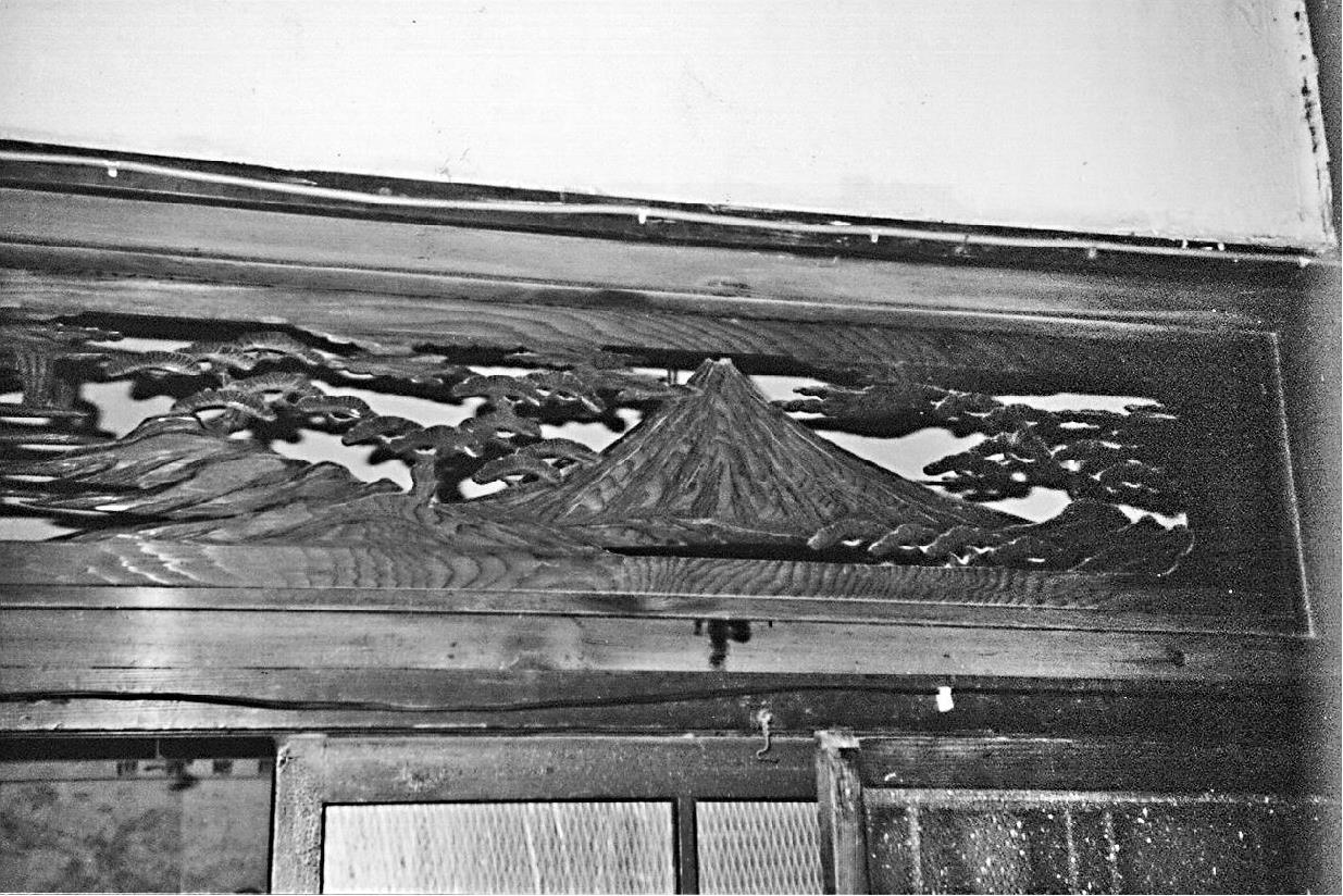 1-8 原“大一沙龙”“慰安妇”房间里的富士山木雕,至今保存完好。它具有日本昭和时代的风格,在日本各地的观光地仍能看到不少类似的木雕作品。(苏智良1995年摄)