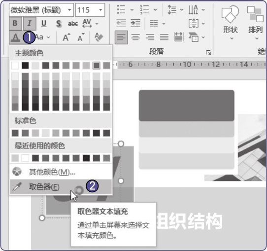 PowerPoint中的取色器与Photoshop中的吸管工具相似,可用于快速地复制颜色。