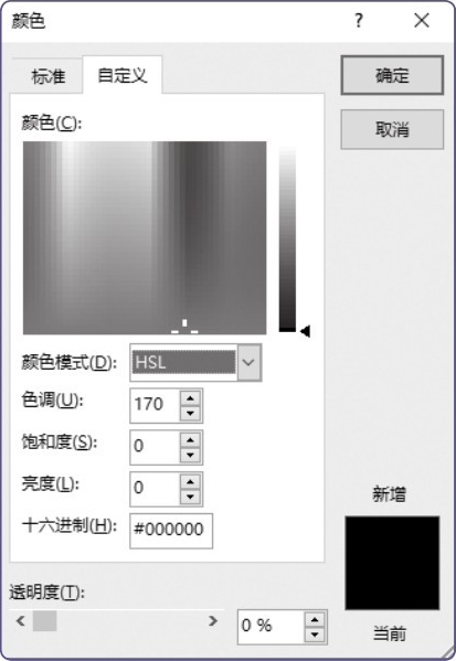 “颜色”对话框中的“颜色模式”分为两种:一种是RGB模式,另一种是HSL模式。HSL模式是工业界的一种颜色标准,是改变色相(H)、饱和度(S)、亮度(L)3个颜色通道的值并将它们相互叠加得到各种颜色,H、S、L的取值范围同样为0~255的整数,如图1-29所示。
