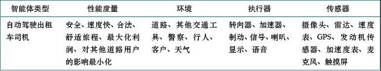 图2-4 自动驾驶出租车司机任务环境的PEAS描述