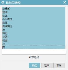 :单击此按钮,打开图2-2所示的“按类型选择”对话框,在该对话框中可设置在选择对象时需要包括或排除的对象类型。当选择“基准”“曲线”“面”“尺寸”“符号”等对象类型时,单击“细节过滤”按钮,还可以做进一步限制,“基准”对话框如图2-3所示。