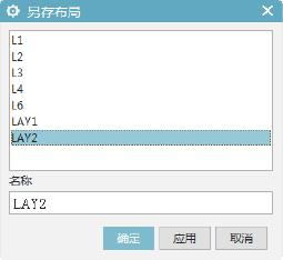 (9)另存为:选择该命令后,打开图2-36所示的“另存布局”对话框,在列表框中选择要更换名称进行保存的布局,在“名称”文本框中输入一个新的布局名称,系统就会用该新名称保存修改过的布局。
