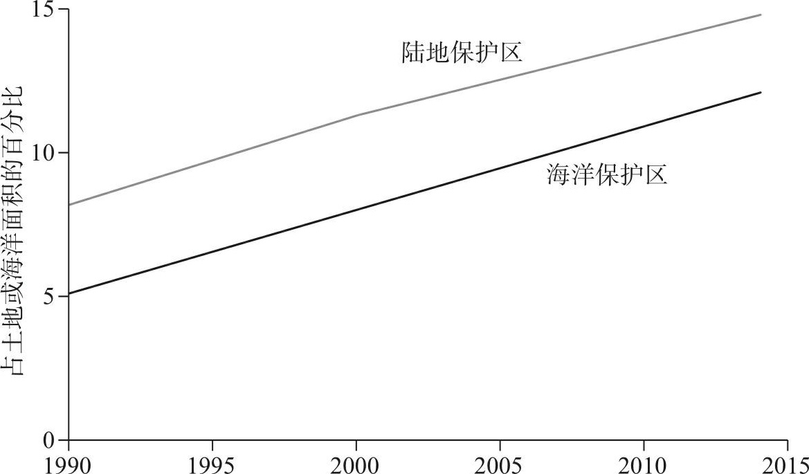 图10-6 保护区增长(1990—2014年)