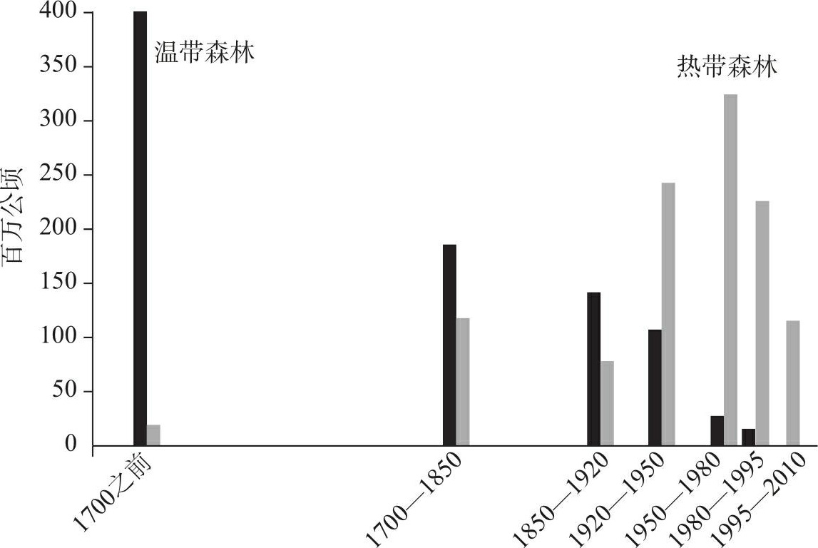 图10-4 森林砍伐(1700—2010年)