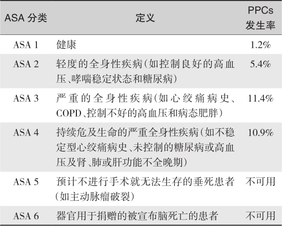 表1-1 ASA分级和PPCs发生率