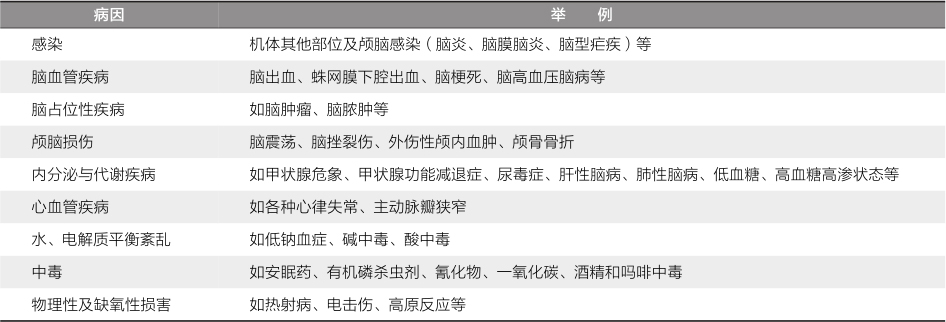 正常情况下,人的意识需要一个完善而正常的中枢神经系统维持,当中枢神经系统发生器质性或代谢性病变时,均可导致意识障碍或昏迷。引起昏迷的病因见表3-2。