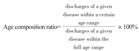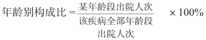 某一时期内某疾病在某年龄段的出院人次占该疾病全部年龄段出院人次的比例。