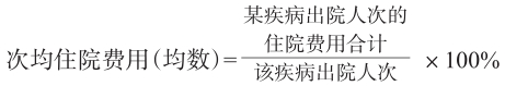 次均住院费用(中位数):将某疾病每一出院人次住院费用的金额由小到大排序后取居于中间位置的值(如果样本数是偶数则取两个中间值的平均)。