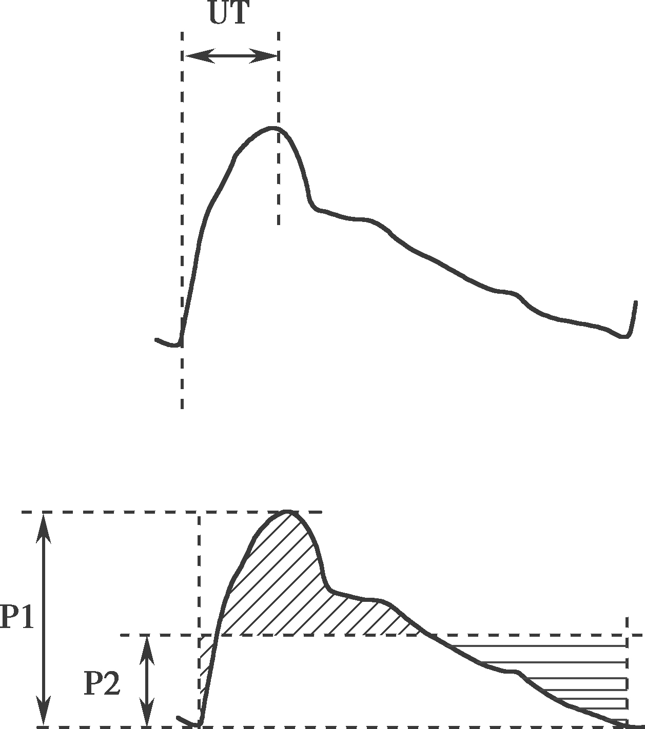 图2-3 PVR波形分析定量参数UT、UTCC和%MAP计算方法