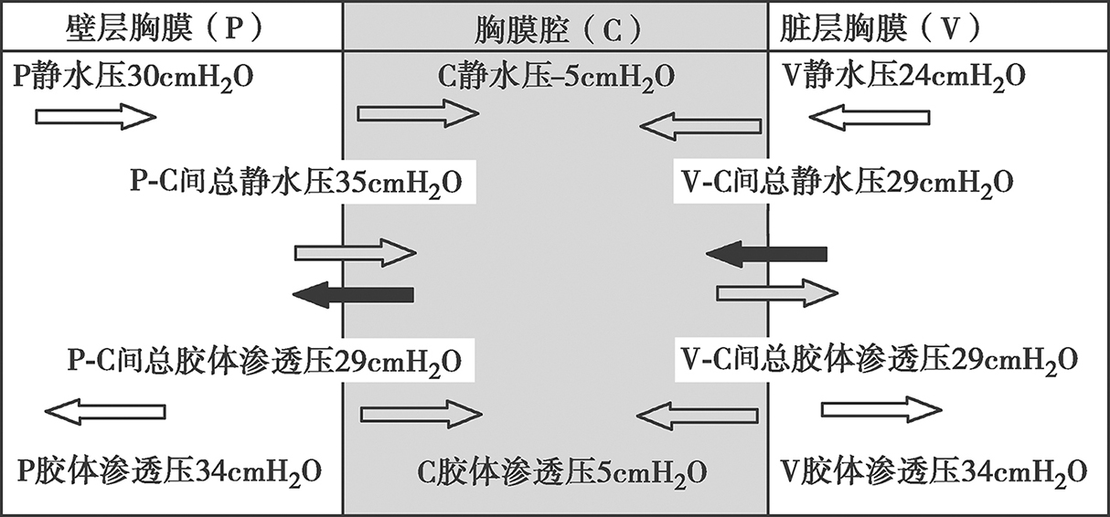 图2-13-1 人体正常情况下影响液体进出胸膜腔的压力对比