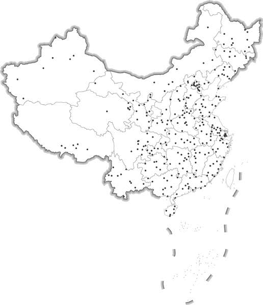 以中国死因监测系统的605个监测点为基础,将31个省(自治区、直辖市)监测点分别按照各自的城镇化率(高、低)和人口数(高、低)分为4层,在每层内选取监测点。选取时尽量考虑地域和城乡等因素的均衡性以及现有工作基础。监测点的数量根据省(自治区、直辖市)的人口规模和分布确定,当监测点数较多时尽量保证每层内均有至少1个县(区)被选为监测点。在新疆生产建设兵团抽取4个师作为监测点。最终确定302个监测点(图1-1)。
