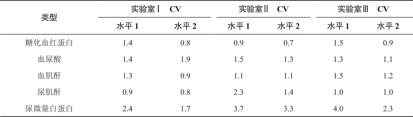 表1-2 主要实验室指标检测商品质控品质量控制结果 单位:%
