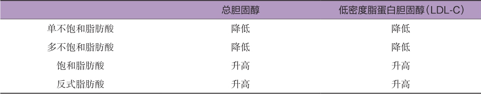 表1-1 饮食中的脂肪对血脂的影响