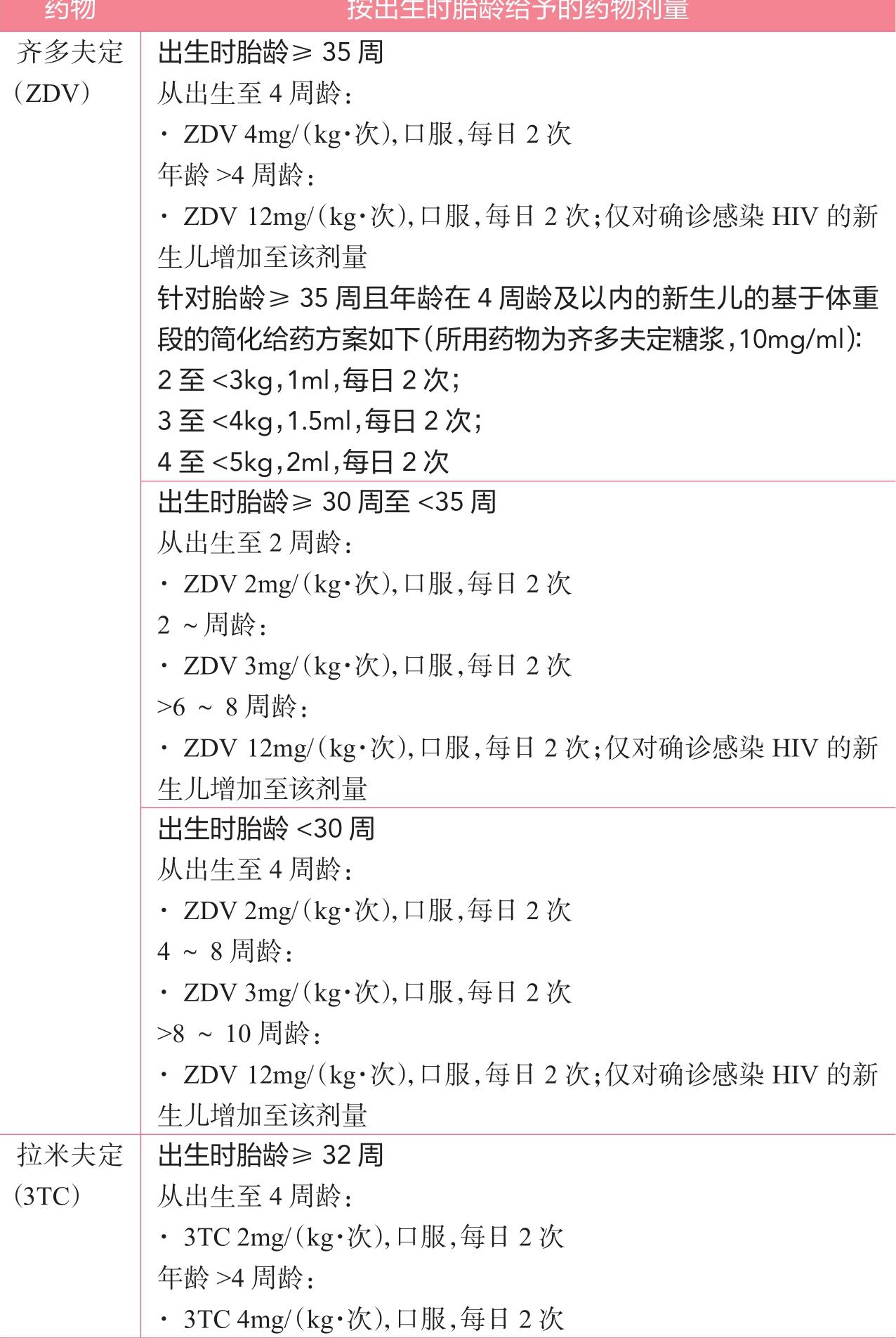 HIV暴露新生儿预防性用药剂量见表2-2。