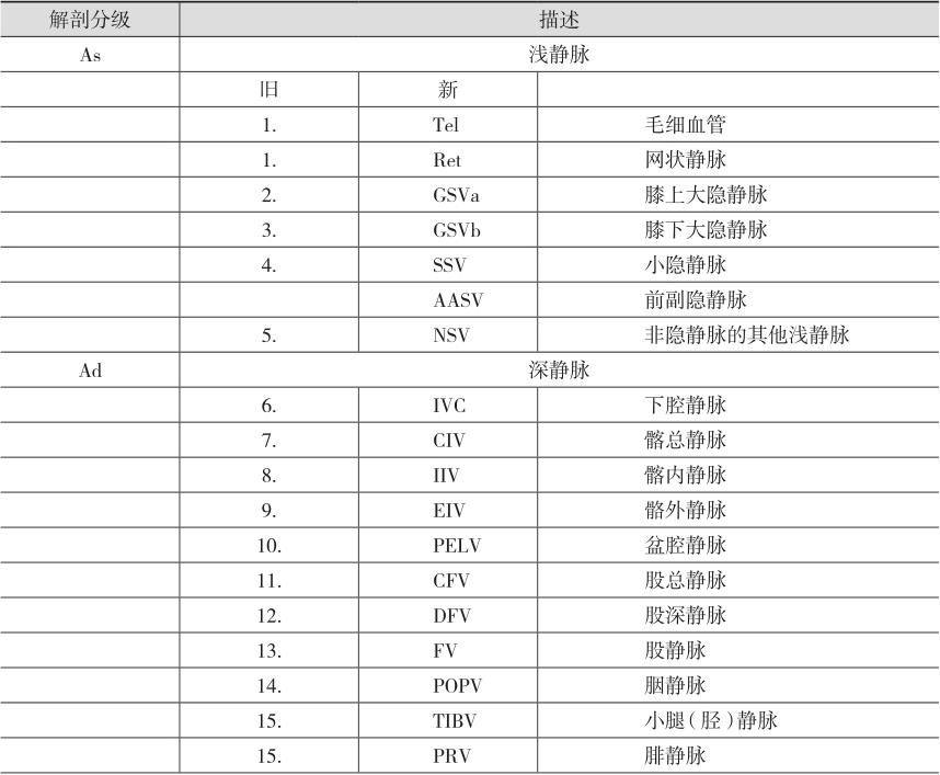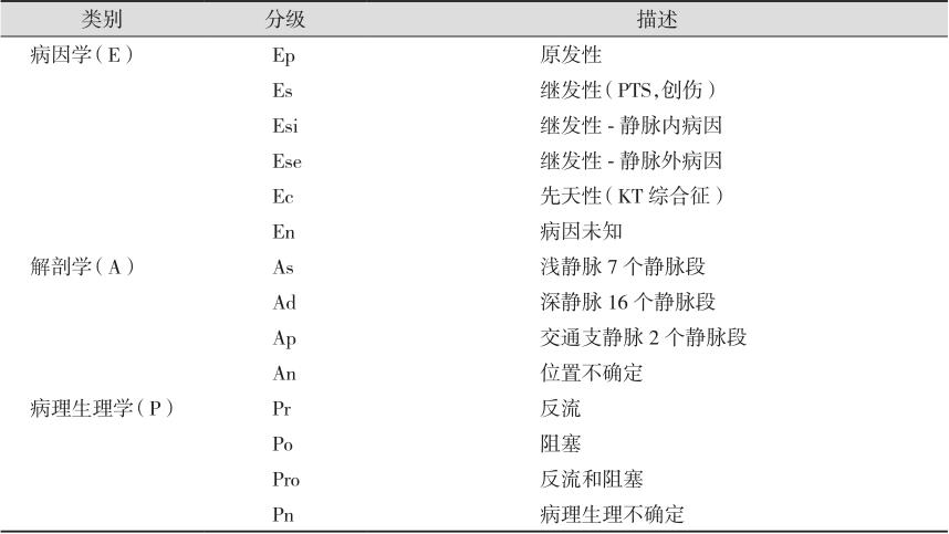 表2-2 CEAP分级 解剖分类涉及的静脉节段