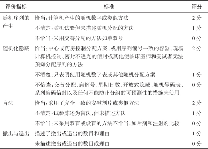 随机临床试验在设计、实施和分析中存在的缺陷会导致偏倚,严格设计和实施的研究更能得到接近真实的结果。因此,对随机对照试验进行偏倚风险的评估十分重要。