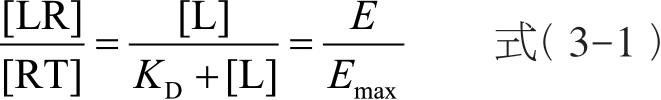 受体动力学的基本公式(结合型受体量为[LR],受体总量为[RT],最大效应为 E max ,解离常数为 K D ):