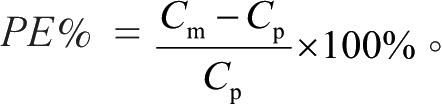 )的误差来衡量,对于每个实测浓度与预期浓度的误差用执行误差(performance error)的百分数(