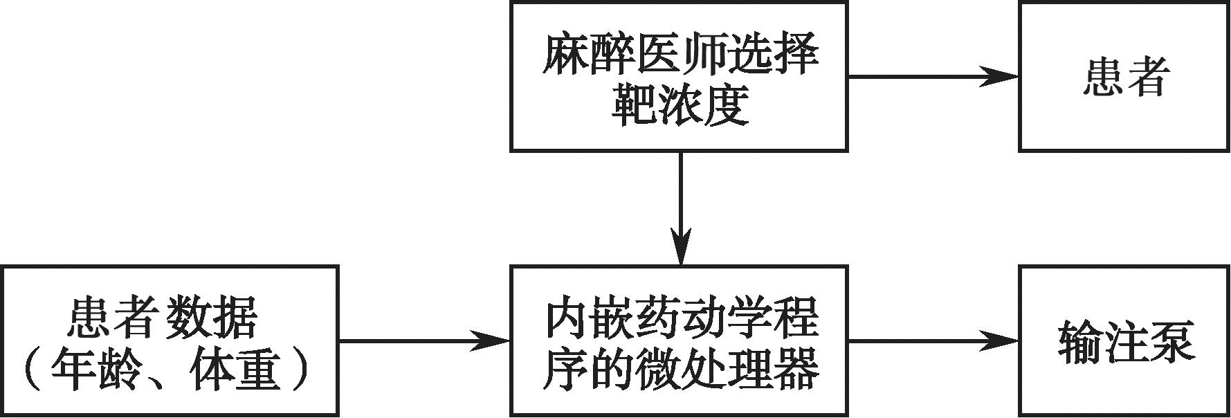 TCI 系统的硬件包括输注泵、控制输注泵运转的微机以及当微机发生错误时关闭系统的安全机制。软件包括药动学模型以及与药物输注有关的特殊参数(图4-10)。