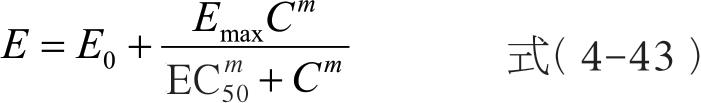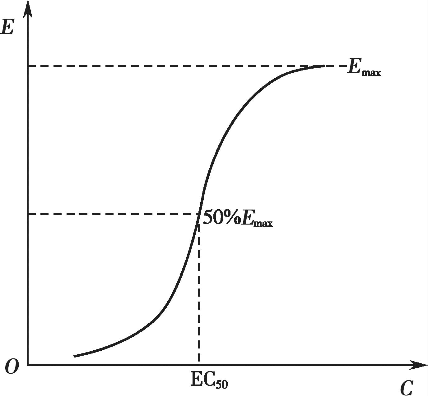 式中, E max 为可能的最大效应;EC 50 为引起50%的最大效应的药物浓度。