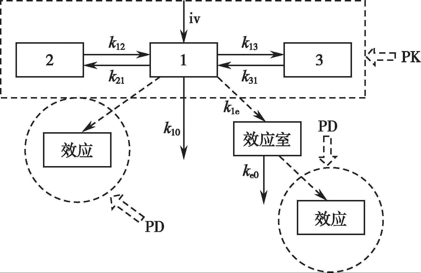 5.将量效转换关系与药动学模型中的药效室联系起来,构建PK-PD 模型。