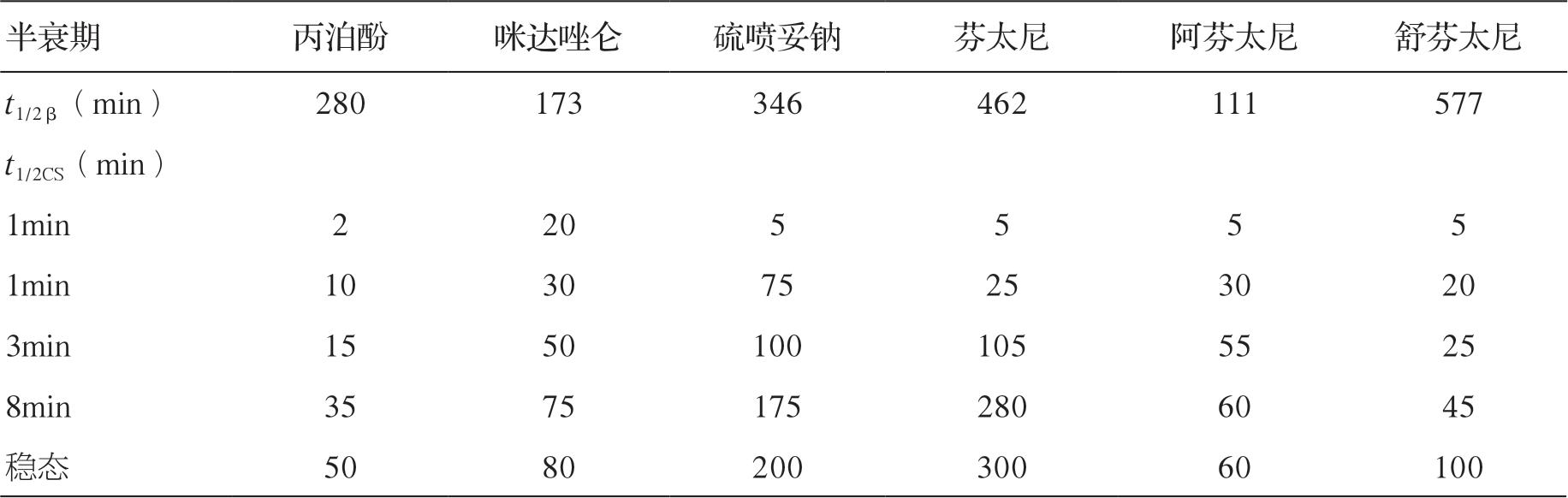 表4-2 常见麻醉药的消除半衰期与时量相关半衰期