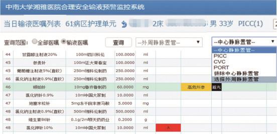 表1 中南大学湘雅医院静脉治疗质量监控指标说明书
