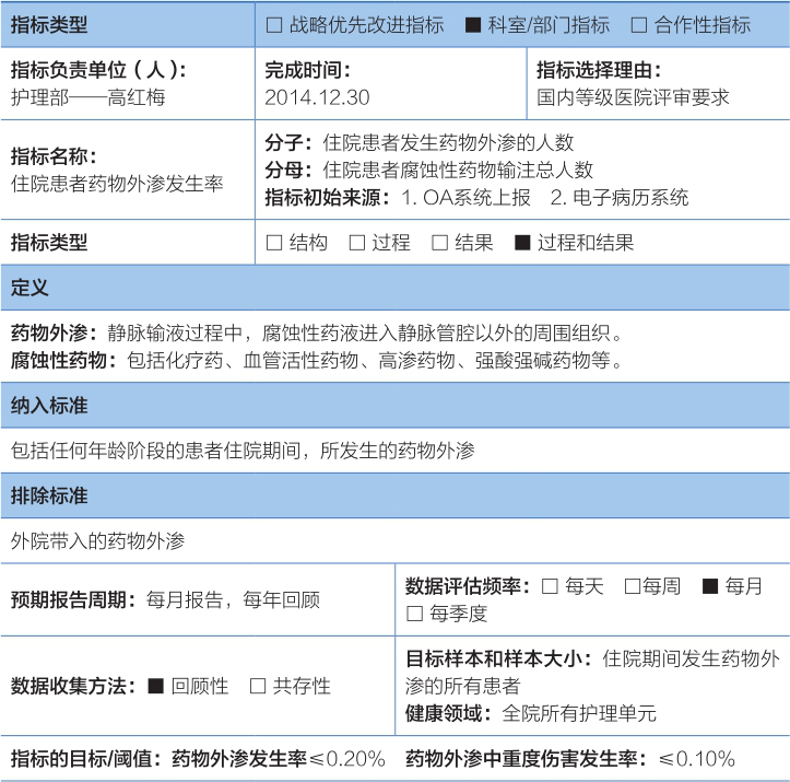 表1 中南大学湘雅医院静脉治疗质量监控指标说明书