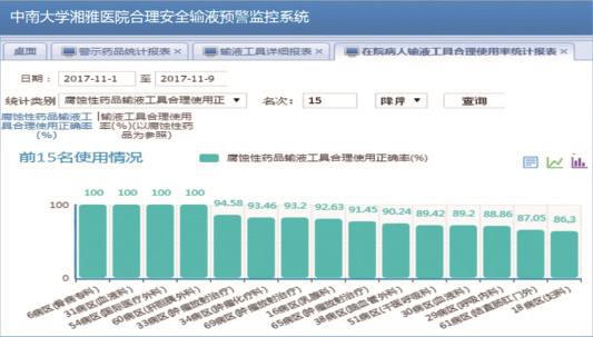 湘雅医院静疗团队研发了国内首个医护药一体化合理安全输液智能预警监控系统,能实现药物说明书在线查询、高危外渗药物警示、输液工具选择、药物外渗处理等人工智能预警与决策及实时监控,此系统向10家省市级医院推广应用。为解决上腔静脉阻塞化疗患者的输液难题,团队在国内开展经大腿中部股浅静脉PICC置管,获得医生、护士、患者的好评,研究成果在2016年世界肺癌大会及2017年世界肿瘤大会上作主题发言,在国内多个学术交流会上进行专题讲座,受众2 000余人次,并培养86名全国PICC专科护士应用此方法。主办全国静疗培训会6次,受众近2 000名;定点帮扶基层医院10家;建立全国“医护患”PICC立体维护网点155家;创建“静疗惠”自媒体品牌,点击量达38 000人次。总之,通过多途径将践行《静脉治疗规范》的湘雅模式在区域推广。