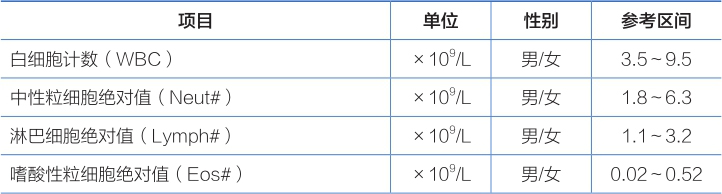 ①新生儿及儿童:白细胞和红细胞计数结果随年龄增长有明显变化;