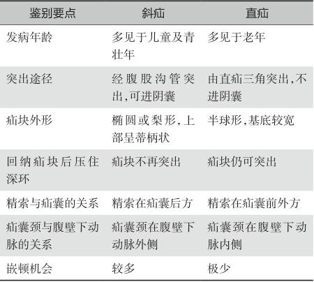 (1)斜疝与直疝的鉴别见表6-16-1。