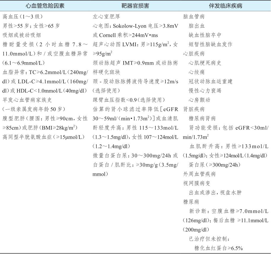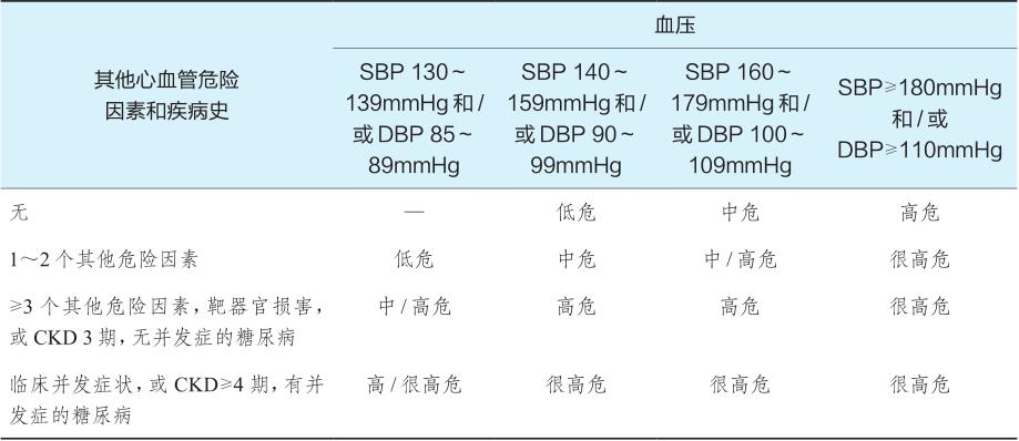 高血压患者心血管风险水平分层见表4-1-3。