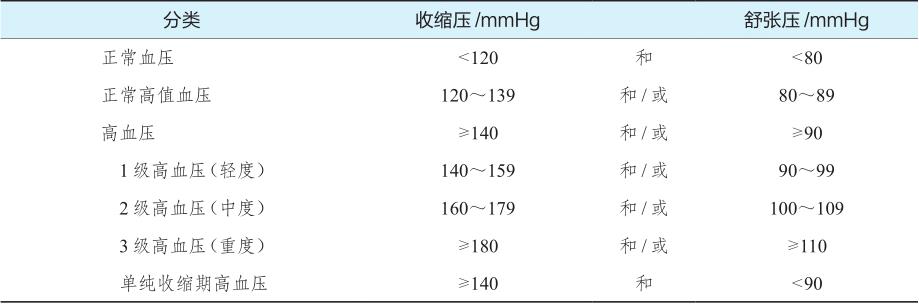 注:当收缩压和舒张压分别属于不同级别时,以较高的分级为准。