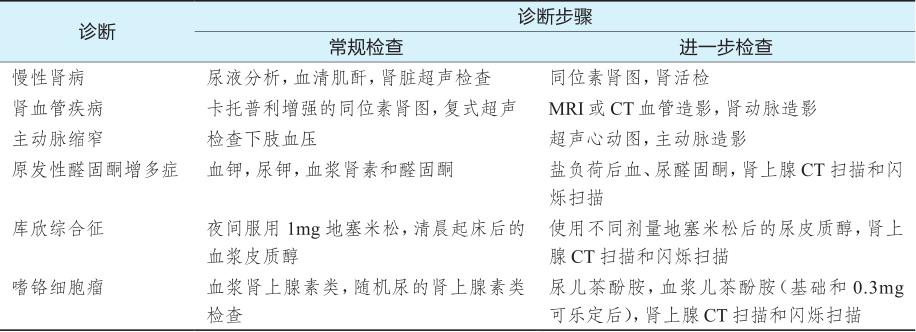 表4-1-2 高血压病因检查的总体指南
