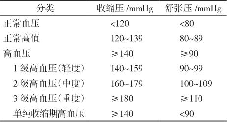 表2-1 血压水平分类和定义