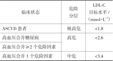 表3-2 高血压患者简易风险分级及LDL-C目标值