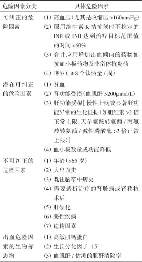 合理的抗凝治疗是预防心房颤动相关脑卒中的有效措施,但同时亦将增加出血风险。因此,在确定患者是否适于抗凝治疗前应评估其获益与风险,只有预防栓塞事件的获益明显超过出血的风险时方可启动抗凝治疗。