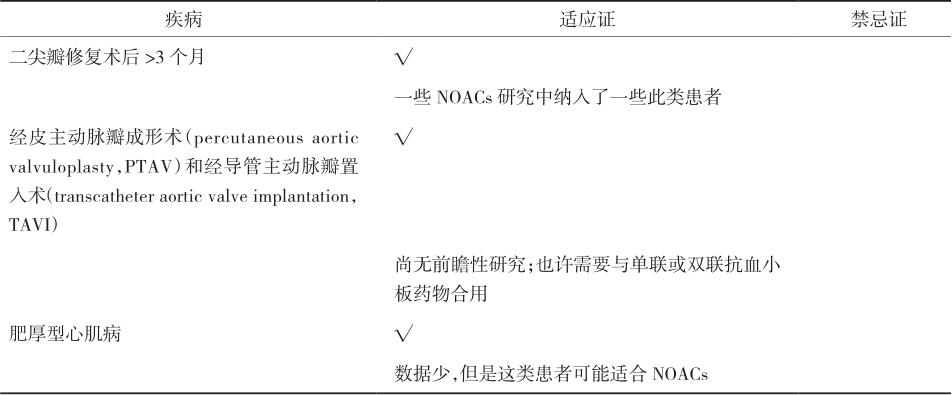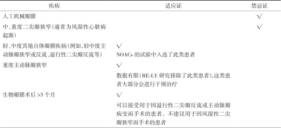 表6-5 心房颤动合并瓣膜病变患者使用NOACs的适应证与禁忌证