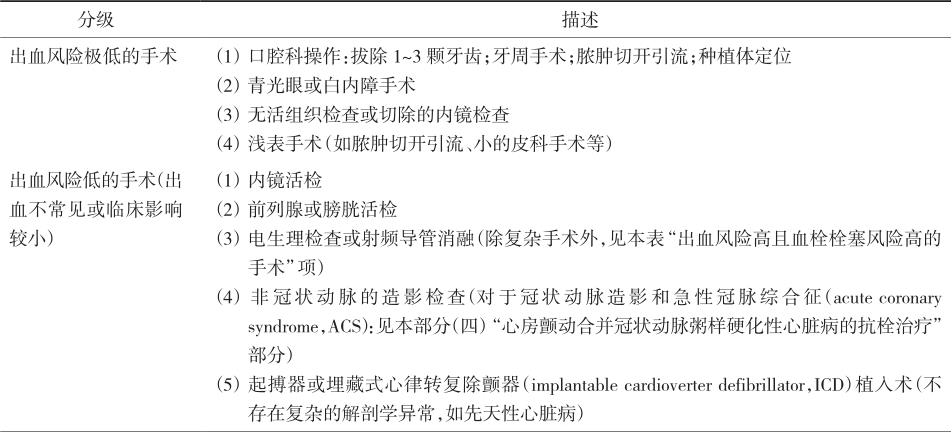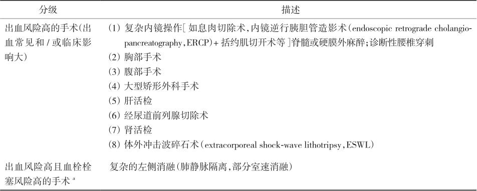 注:对于每位患者,应评估其本身的出血和血栓栓塞的风险,并与手术医师讨论后决定治疗方案。