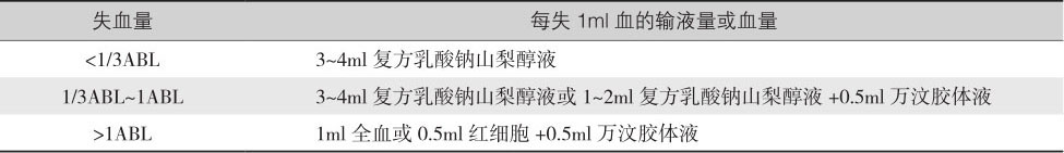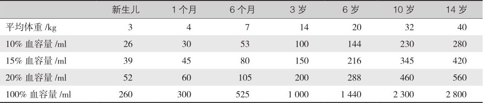 不同年龄儿童失血与血容量的关系见表4-5。
