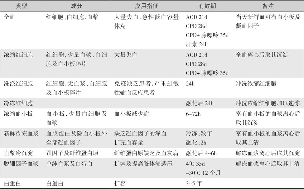 表4-7 常用的血液制品