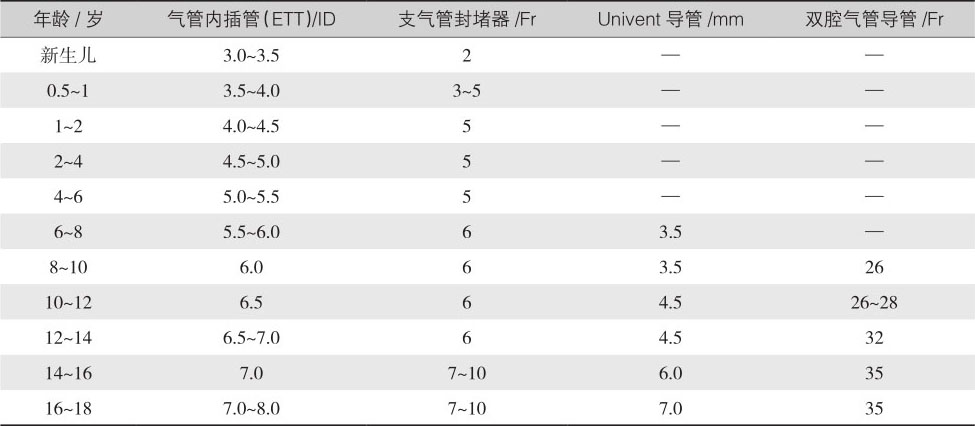 表4-8 小儿单肺通气选择