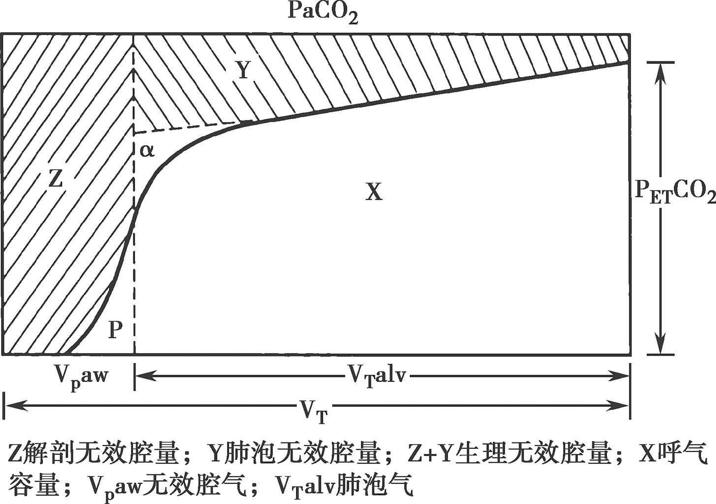(4)呼气平台向上斜行,α角增大(图4-7)提示生理无效腔量增多。