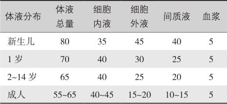 要实现小儿液体的正确管理,须首先了解小儿的生理特点以及伴随其生长发育所发生的变化。不同时期的儿童液体总量、体内分布(表4-3)。