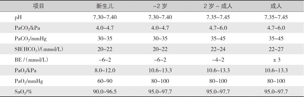 表4-11 小儿血气分析的正常值