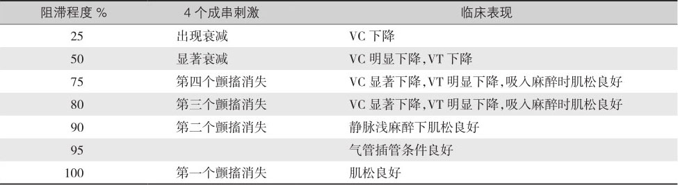 表4-12 肌松药阻滞程度