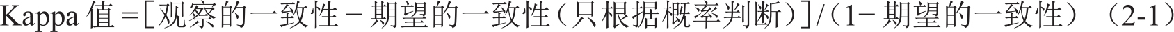 Kappa统计量可以用于评估不受期望一致性影响的一致性,见式(2-1)。