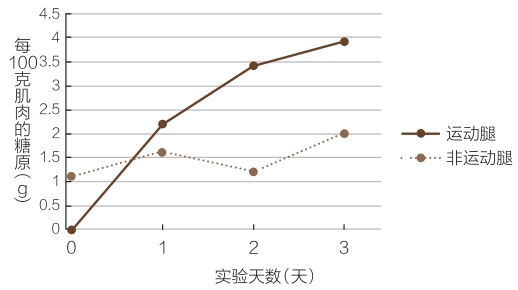 运动腿与非运动腿股四头肌肌糖原含量示意图