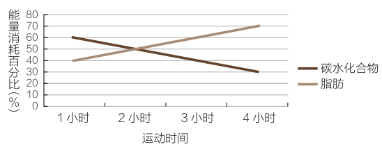 能量物质的利用还跟运动时间有关,运动时间越长,脂肪消耗的比例越大,糖类消耗比例越小。