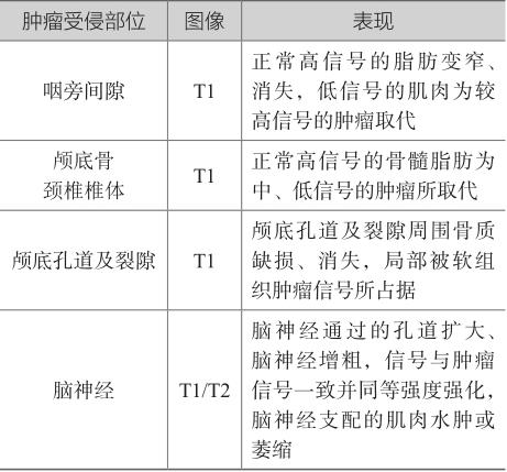 表2-3-1 鼻咽癌周围结构受侵磁共振表现